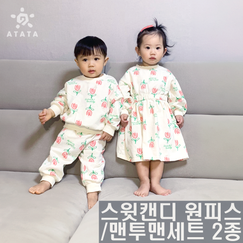 [국내제작] 봄 스윗캔디 원피스/ 맨투맨 상하 세트 2종