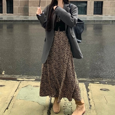 gc.[DE881]레오파드슬리브리스롱원피스