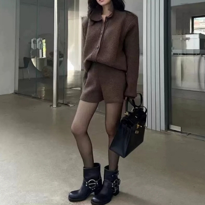 on.[SET347]카라가디건반바지투피스
