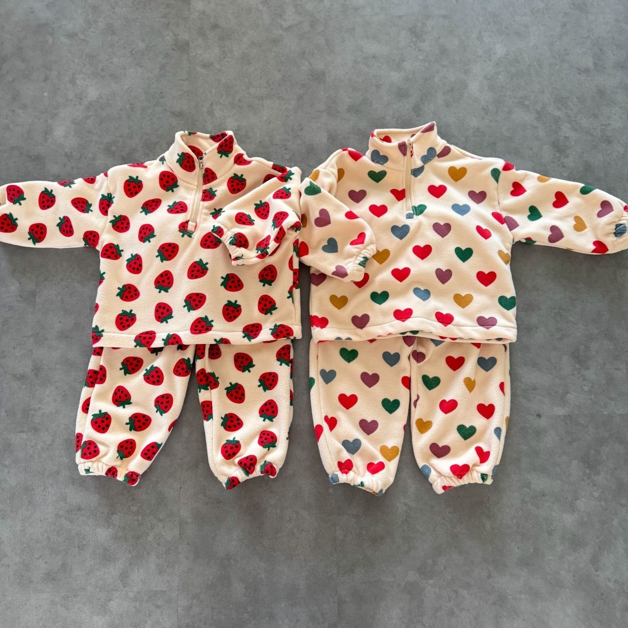 [수입]딸기하트후리스반집업셋